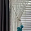 Ekru Kordonlu Petrol Renk 4 Toplu Modern Sarım Tül Ve Fon Perde Tavan Bağlama Aparatı
